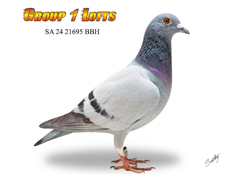 Lot 2:  SA 24 21773 BCC-G Hamilton Lines.  Flown twice in 2025 then stopped.  Direct son of Runner Up SAHPA Bird of the Year in 2024 who we lost racing in Marla 2025.  Sire is Rick Design, original Ross Hocking,  Bred for stock son of Maverick & By Design.  Half brother to 2 x 1st SAHPA winners. Dam is Lucy, Runner Up SAHPA Bird of the Year 2024,  4th SAHPA The Twins Open #2 2024 1169 b 610 km, 5th SAHPA Coober Pedy 726 km 1199b 2024.G Hamilton lines, G/dtr of ace racer and produc...